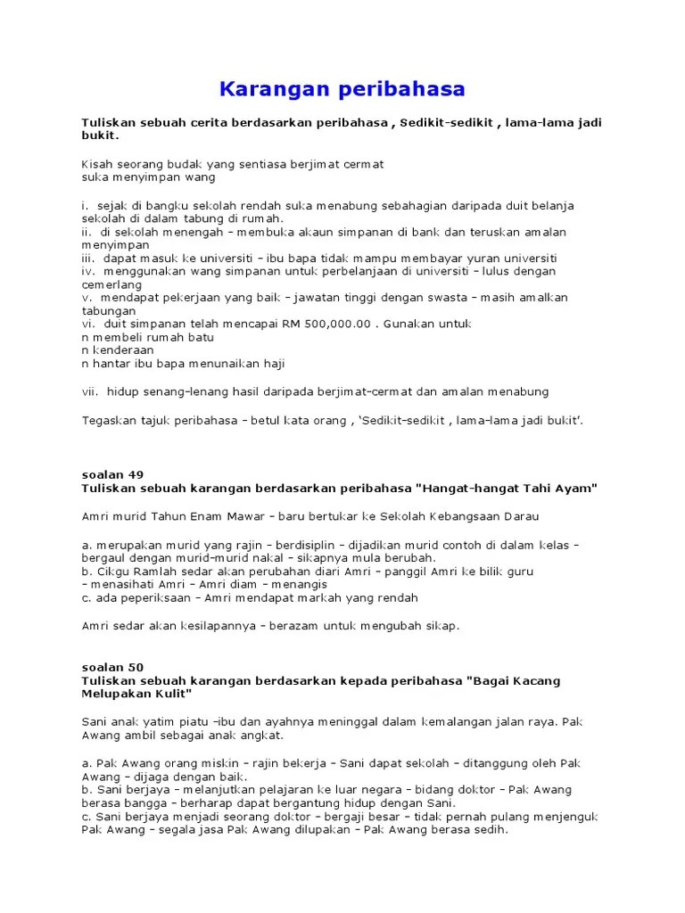 Mendidik masyarakat untuk berjimat cermat dan tidak boros ketika berbelanja. Nota komsas, isi karangan, contoh karangan spm, pt3, stpm. Blog kali ini saya sertakan satu contoh karangan peribahasa itu.